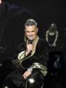 Opener ‘Hey Wow Yeah Yeah’ found Robbie caged and in silhouette at the rear of the stage before making his grand entrance resplendent in a suit of gold. There was nothing subtle here and the emphasis was on entertainment with a capital E. Fitting then that ‘Let Me Entertain You’ was up next complete with a full horn section, dancing girls and a capacity crowd singing along at full volume.