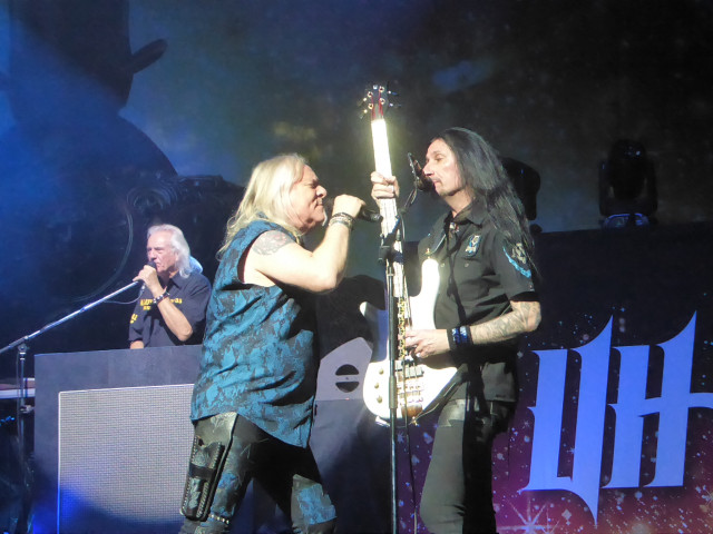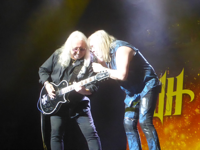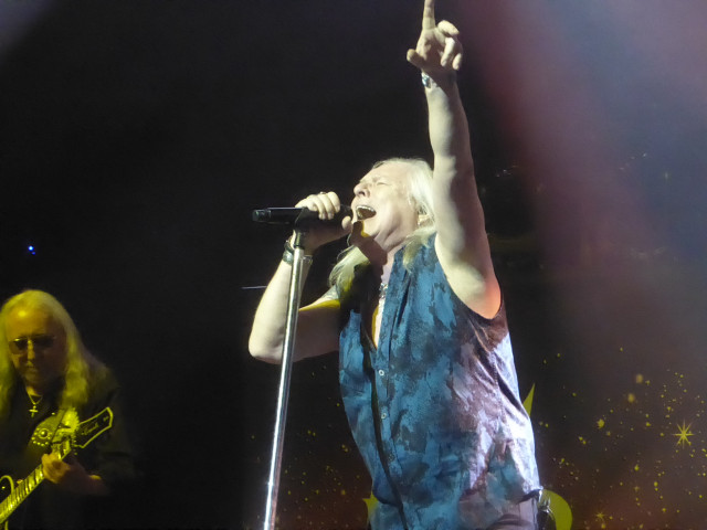 People had remained resolutely seated during their set but as Uriah Heep came on stage with a well-lit stage show, fellow Canadian Bernie Shaw summoned the crowd to their feet, where they stayed for the rest of the show- proof that he is a consummate ringmaster and underrated as one of the best frontmen around. With only a 90 minute set my question was how they would cram those 55 years in.